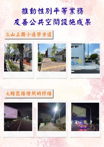 ~推動性別平等-建置友善公共空間設施之成果~為提供市民更多服務與照顧,加強公共空間性別友善設施之設置,提供更友善、便利、安心之公共空間!!