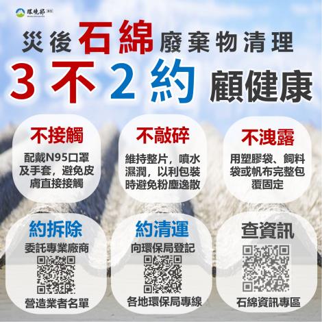 函轉市府工務局有關勞動部訂定之「因應災後石綿屋瓦浪板拆除清理作業危害預防處理原則」及環境部訂定之「天然災害後石綿建材廢棄物清除處理指引」與圖卡各1份。