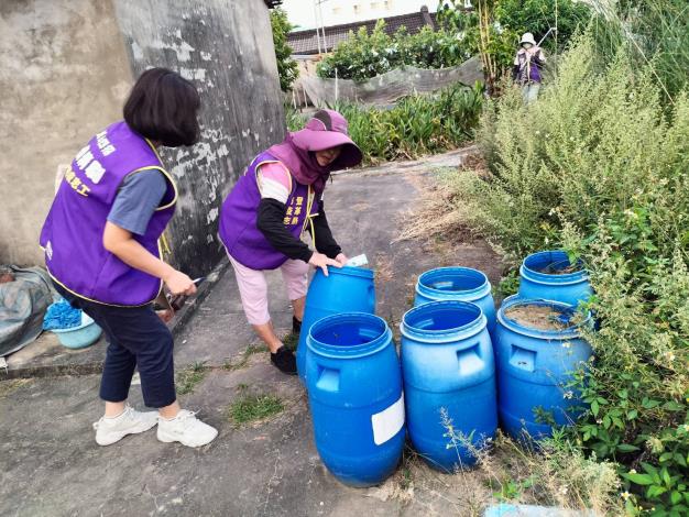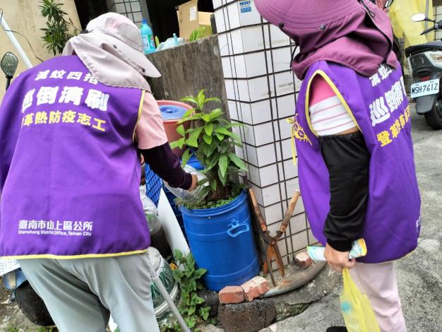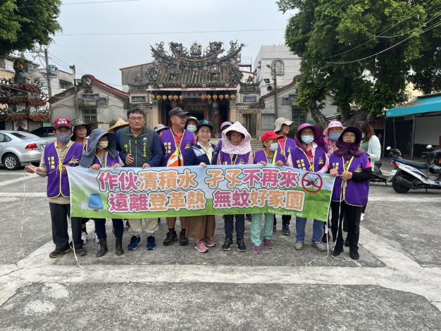 避免登革熱因氣候關係上升,提醒里民朋友,透過「巡、倒、清、刷」四步驟,仔細「巡視」家戶內外積水容器,將積水「倒掉」,不要的容器要「清除」,留下的器物要「刷洗」才可以去除斑蚊蟲卵,杜絕登革熱孳生。