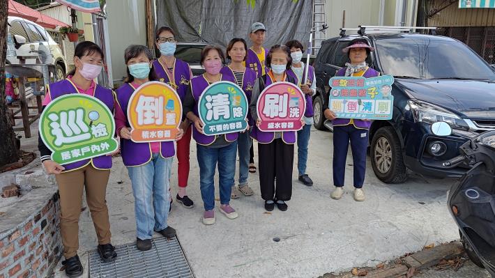 避免登革熱因氣候關係上升,提醒里民朋友,透過「巡、倒、清、刷」四步驟,仔細「巡視」家戶內外積水容器,將積水「倒掉」,不要的容器要「清除」,留下的器物要「刷洗」才可以去除斑蚊蟲卵,杜絕登革熱孳生。