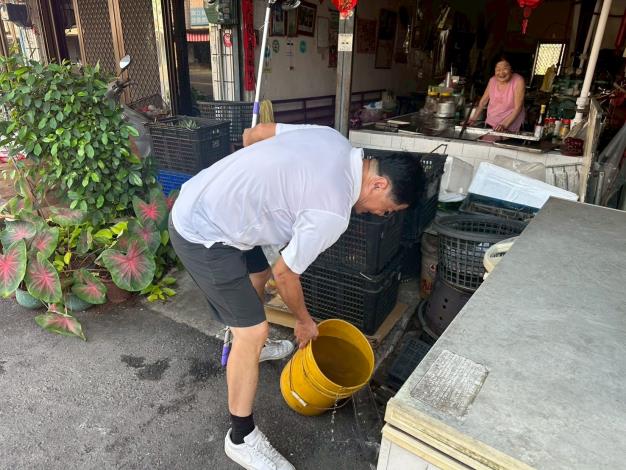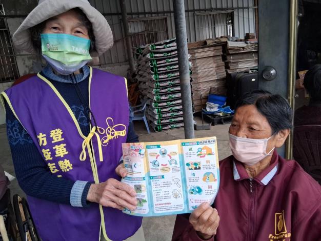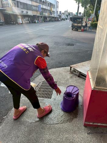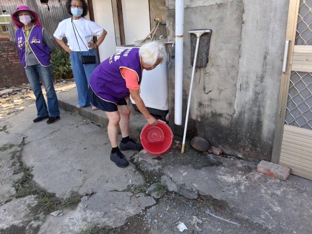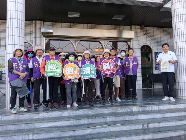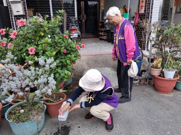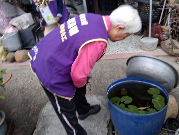 避免登革熱因氣候關係上升,提醒里民朋友,透過「巡、倒、清、刷」四步驟,仔細「巡視」家戶內外積水容器,將積水「倒掉」,不要的容器要「清除」,留下的器物要「刷洗」才可以去除斑蚊蟲卵,杜絕登革熱孳生。