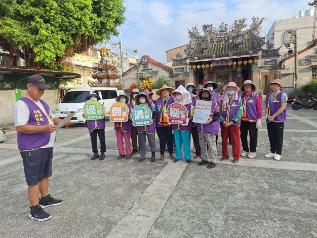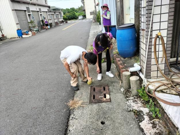 避免登革熱因氣候關係上升,提醒里民朋友,透過「巡、倒、清、刷」四步驟,仔細「巡視」家戶內外積水容器,將積水「倒掉」,不要的容器要「清除」,留下的器物要「刷洗」才可以去除斑蚊蟲卵,杜絕登革熱孳生。