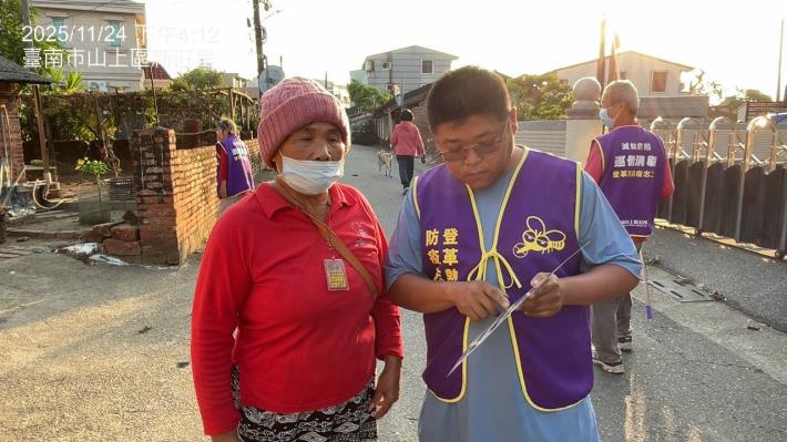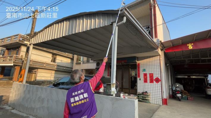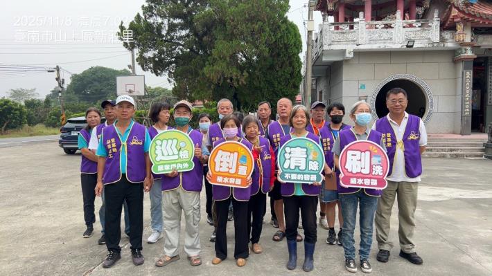 避免登革熱因氣候關係上升,提醒里民朋友,透過「巡、倒、清、刷」四步驟,仔細「巡視」家戶內外積水容器,將積水「倒掉」,不要的容器要「清除」,留下的器物要「刷洗」才可以去除斑蚊蟲卵,杜絕登革熱孳生。